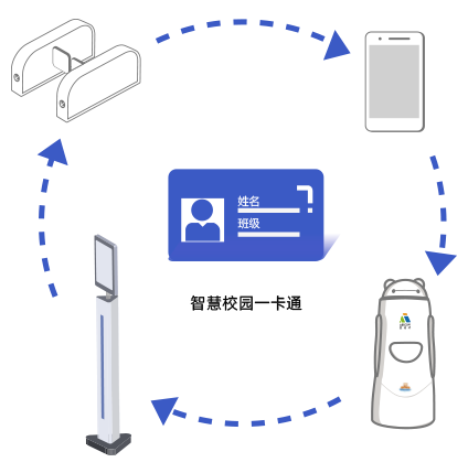 智慧一卡通是以考勤测温一体机为基础设施,集合多款爱诺达智能硬件,实现刷脸、刷卡、扫码、智能推送、消息通知等智慧校园管理系统学生考勤、课堂、健康晨午检等情况均可通过手机端推送消息至家长,同时支持异常考勤定向提醒。实现对师生入校到离校的精准考勤。老师与学生及家长的三方互动式教学管理,达到学校统筹智慧化的管理模式。